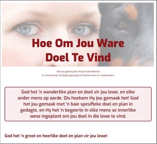 Op die Projek KuberWêreld Uitreikblad het ons die artikels verdeel in Kort Uitreik Boodskappe, Lees-meer Uitreik Boodskappe en Lees-dieper Uitreik Boodskappe. Dit is wenslik dat jy eers self 'n artikel sal lees voor jy dit deel of gebruik in 'n uitreikveldtog.