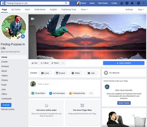 Om 'n Facebook Uitreikbediening te begin moet jy 'n 'fan' of 'business' bladsy hê. Ons gaan hieronder vir jou wys hoe om 'n pos te 'boost'. Jy kan 'n pos egter slegs 'boost' vanaf 'n 'business' of 'fan' bladsy. Ons stel voor jy skep vir jouself 'n 'Uitreikbladsy' as jy nie reeds 'n 'fan page' het nie. Skep jou bladsy in Engels as jy in Engels ook wil uitreik. As jy hoofsaaklik na 'n Afrikaanse gemeenskap wil uitreik, skep jou bladsy in Afrikaans. Jy kan ook twee aparte uitreikbladsye skep.